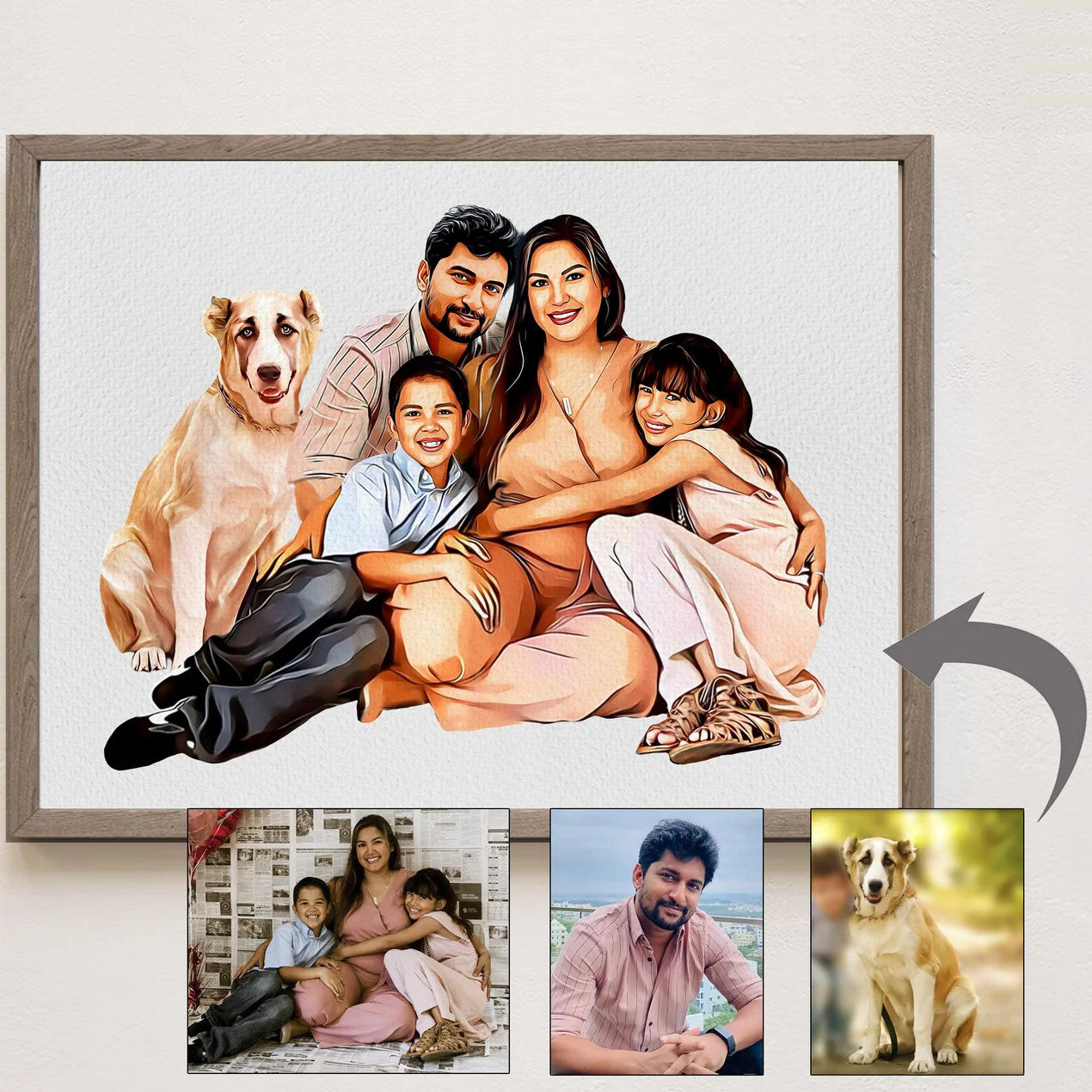 Getting good pictures with our pets is a real struggle! Our fur babies can’t sit still long enough to get that picturesque moment. Do you have the same problem? TheFamFrame has your back. Just submit individual photos of you and your pets - we’ll have our talented artists create a custom portrait just for you. Family pictures have never felt so complete. Hassle-free, no fuss, perfect family portraits every single time.